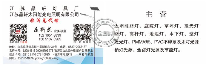 主营 太阳能路灯、庭院灯、草坪灯、投光灯 路灯、高杆灯、地埋灯、水下灯、壁灯 泛光灯、PMMA球、PVC不碎罩及汞灯光源 钠灯光源、金卤灯光源及节能灯。